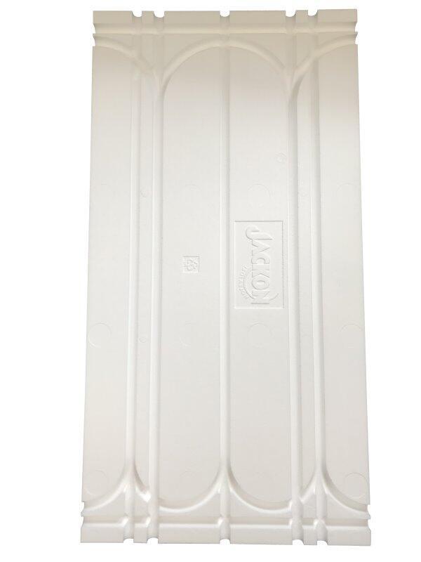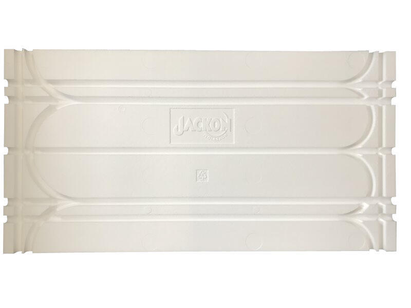 Jackons 2-i-1 gulvvarmeplade er designet med plads til varmeslanger i både Ø16 og Ø20 mm. Varmefordelingsplader og varmeslanger ligges i pladens spor og skal ikke yderligere fastgøres. Dette sikrer enkel og hurtig montering. Gulvvarmepladen er produceret i EPS og findes i 30 mm. tykkelse som standard. Pladen egner sig godt til svømmende gulve og med en trykstyrke på 250 kN/m2, kan gulvvarmepladen anvendes under stort set alle typer overgulv. Samtidig er pladen let i vægt og nem at tilpasse.