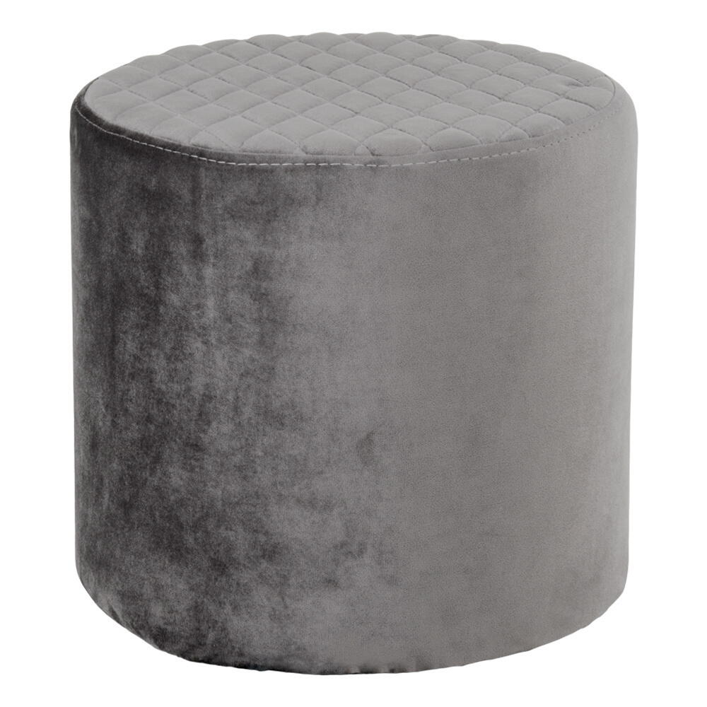 Rund puf i gråt velour.