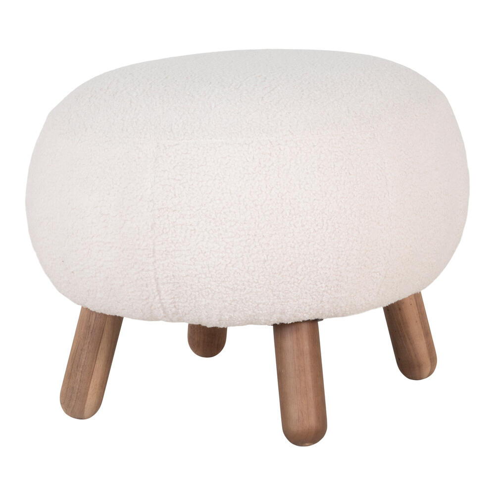 Fodskammel i kunstig lammeskind med valnødfarvede ben.