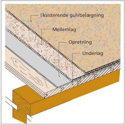 Figur 3. Eksempel på kombination af flere lag gulvbelægning og afretning.