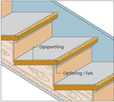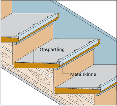 Tr-1 Opforing med liste kan benyttes på trin, som har været beskyttet mod slid af henholdsvis belægning og forkantskinne.