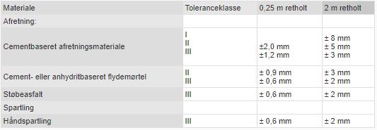 • Den ønskede tolerance for planheden af færdig gulvoverflade, fx ± 2 mm