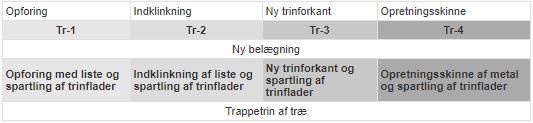 Tr-1 Opforing med liste kan benyttes på trin, som har været beskyttet mod slid af henholdsvis belægning og forkantskinne.