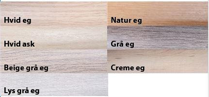 Farver: Hvid eg, hvid ask, natur eg, grå eg, Beige grå eg, Creme eg og Lys grå eg.