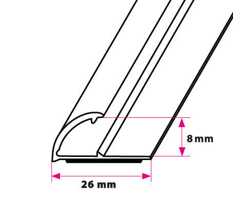 Montering: Selvklæbende - bagsiden af skinnen er belagt med en klar acrylklæber som har særlig god vedhæftning på metal, tekstil, træ samt støvfri beton
