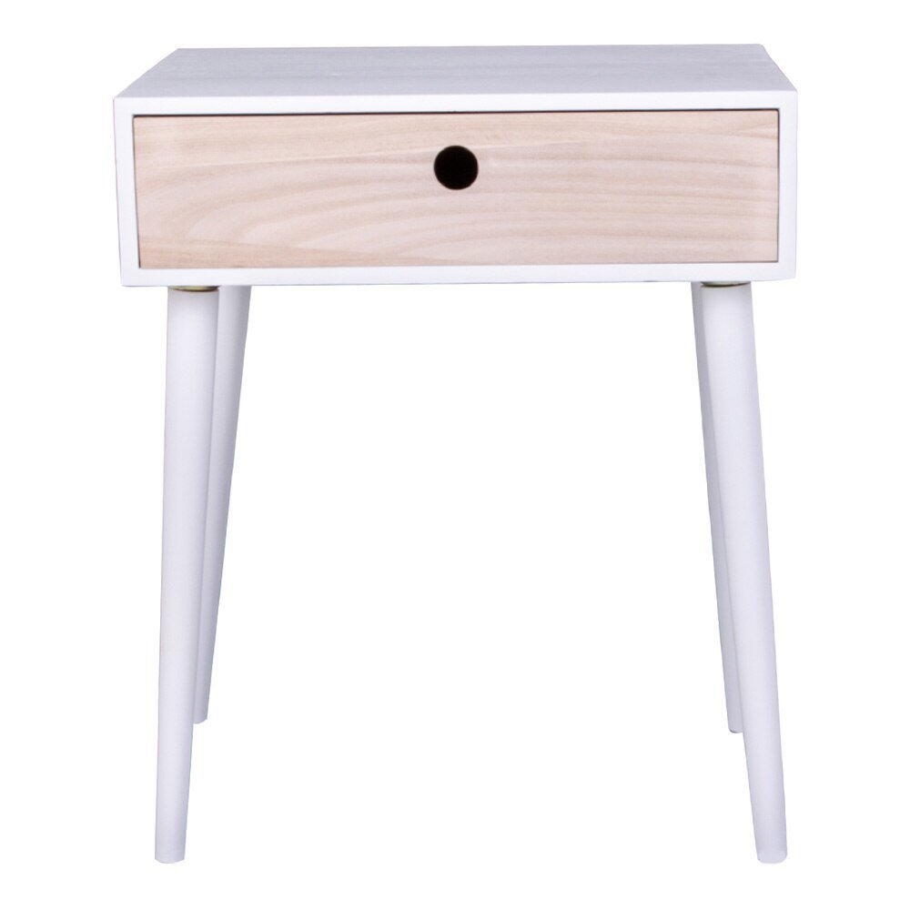Sengebord i hvid med 1 skuffe i naturtræ, i stilren nordiskdesign.
