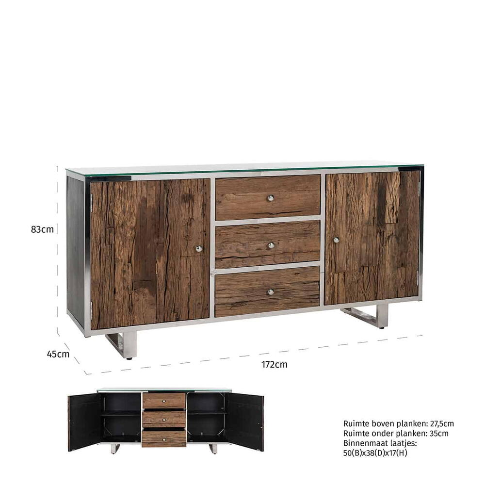 Skænk Kensington, 2-døre 3-skuffer inkl. glas
