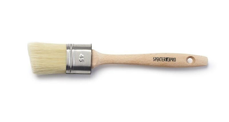 Spekter PRO oval fladpensel med skrå børster, som giver en bedre og mere præcis beskæring. Udstyret med Perfection fibre af højeste kvalitet, som har 20 % højere kapacitet end forgængeren. Penslen giver en jævn glat overflade.