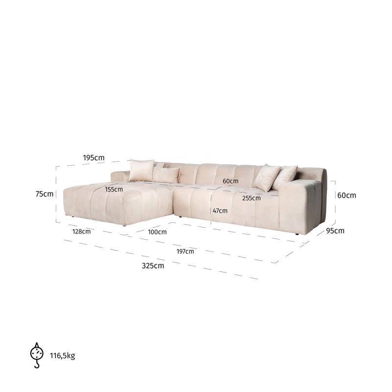 Dimensioner HxBxD: 75.0 x 325.0 x 195.0 cm.