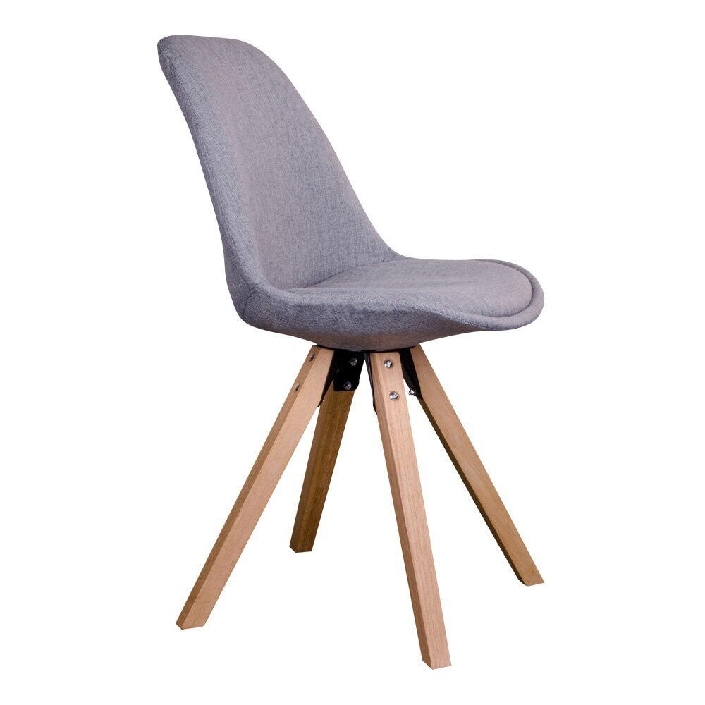 Elegant spisebordsstol i lysegråt slidstærkt stof med høj sidde komfort. Stellet er i naturtræ og giver et stilrent og nordisk udtryk.