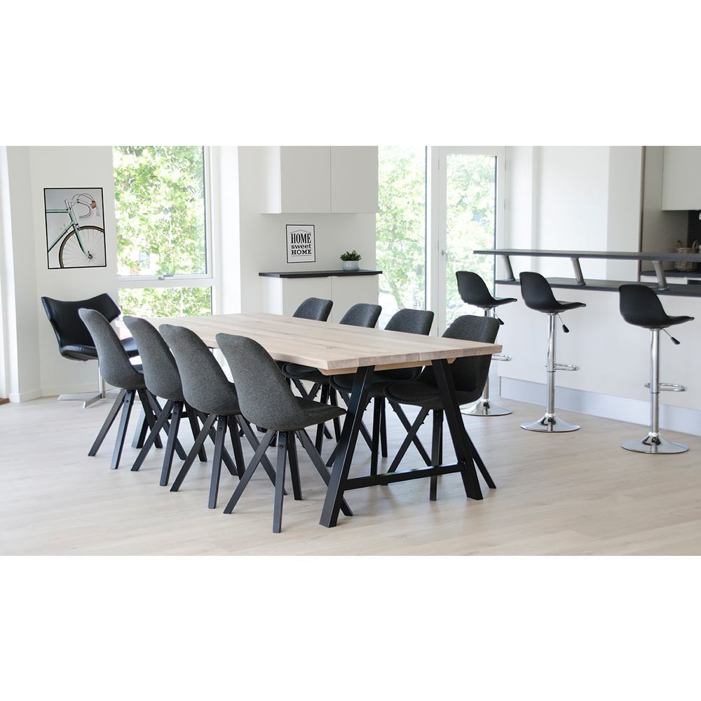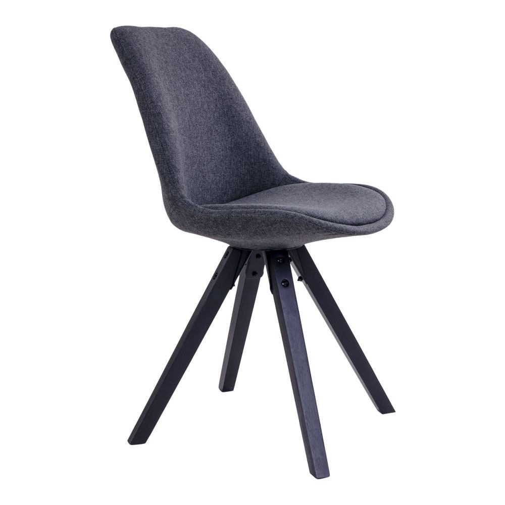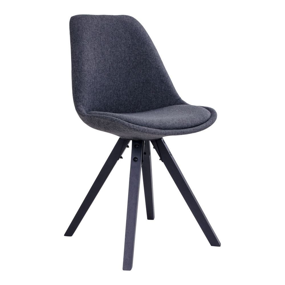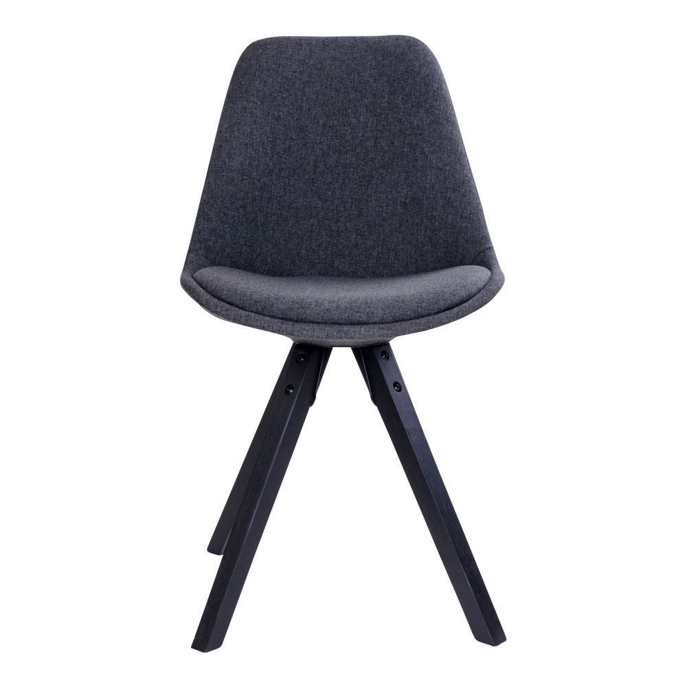 Elegant spisebordsstol i mørkegråt slidstærkt stof med høj sidde komfort. Stellet er i sort malet træ, hvilket giver et stilrent og nordisk udtryk.