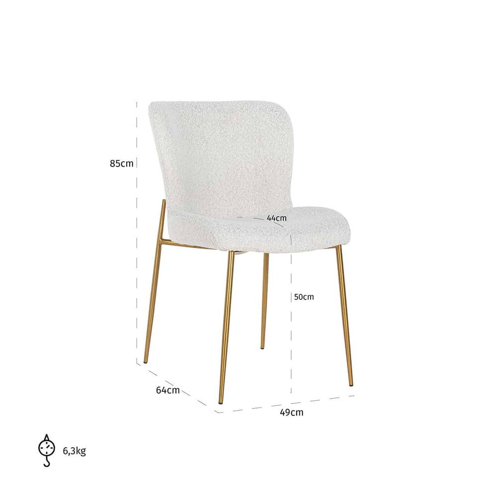Stol Odessa White Bouclé, Børstet Guld