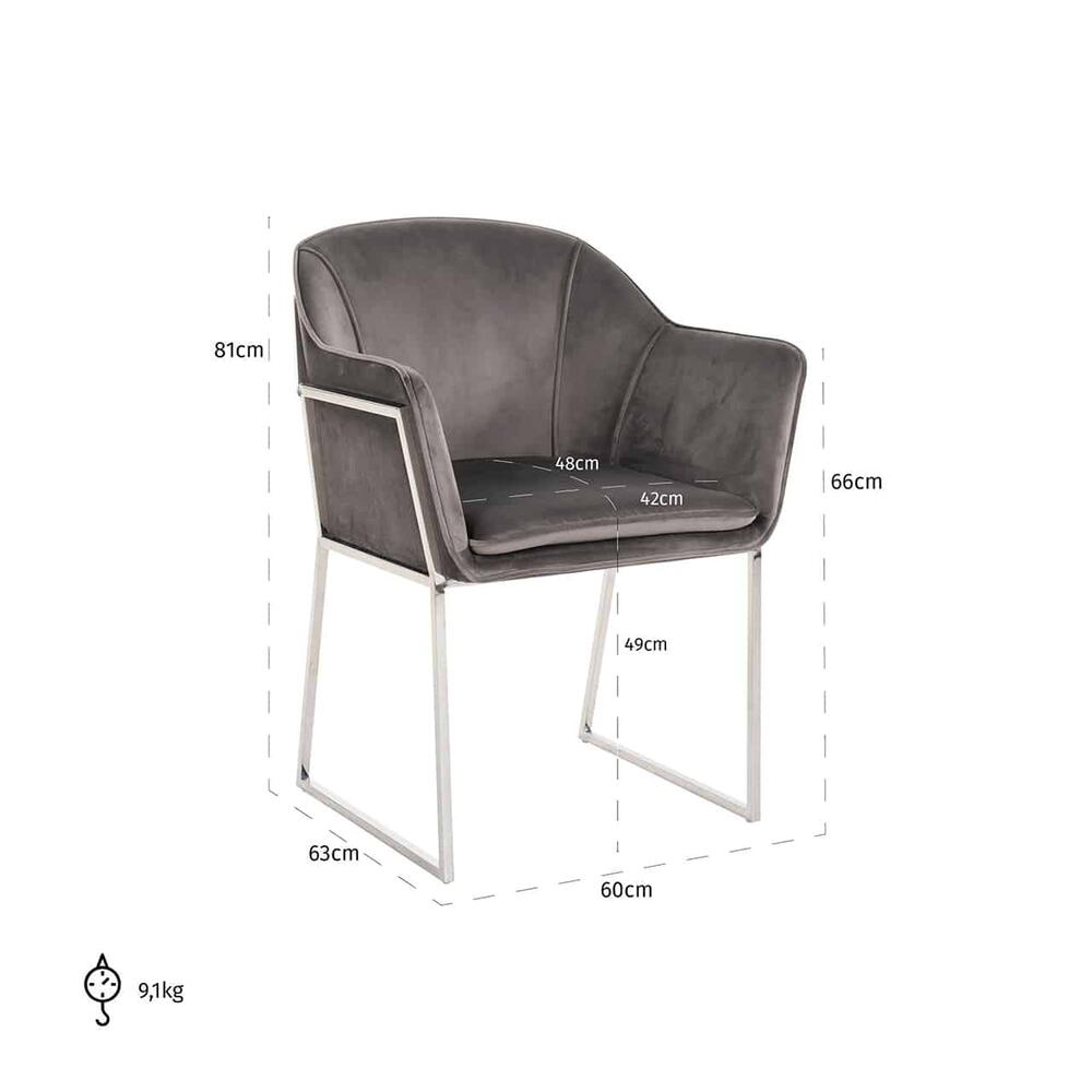 Stol Tresanto sten fløjl, sølv