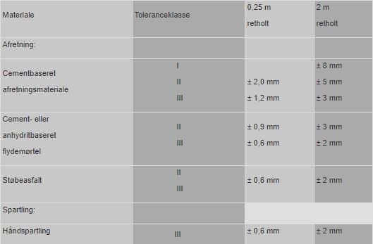 Der må derfor foretages en udligning mellem de to tolerancer ved afretning af dækket, før lægning af gulvbelægning er mulig.