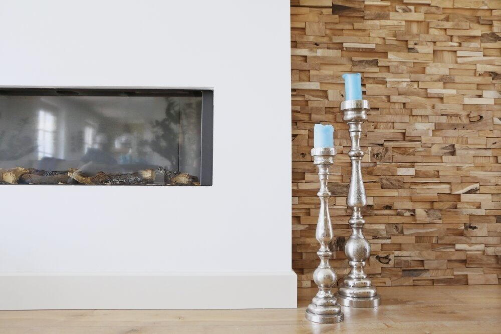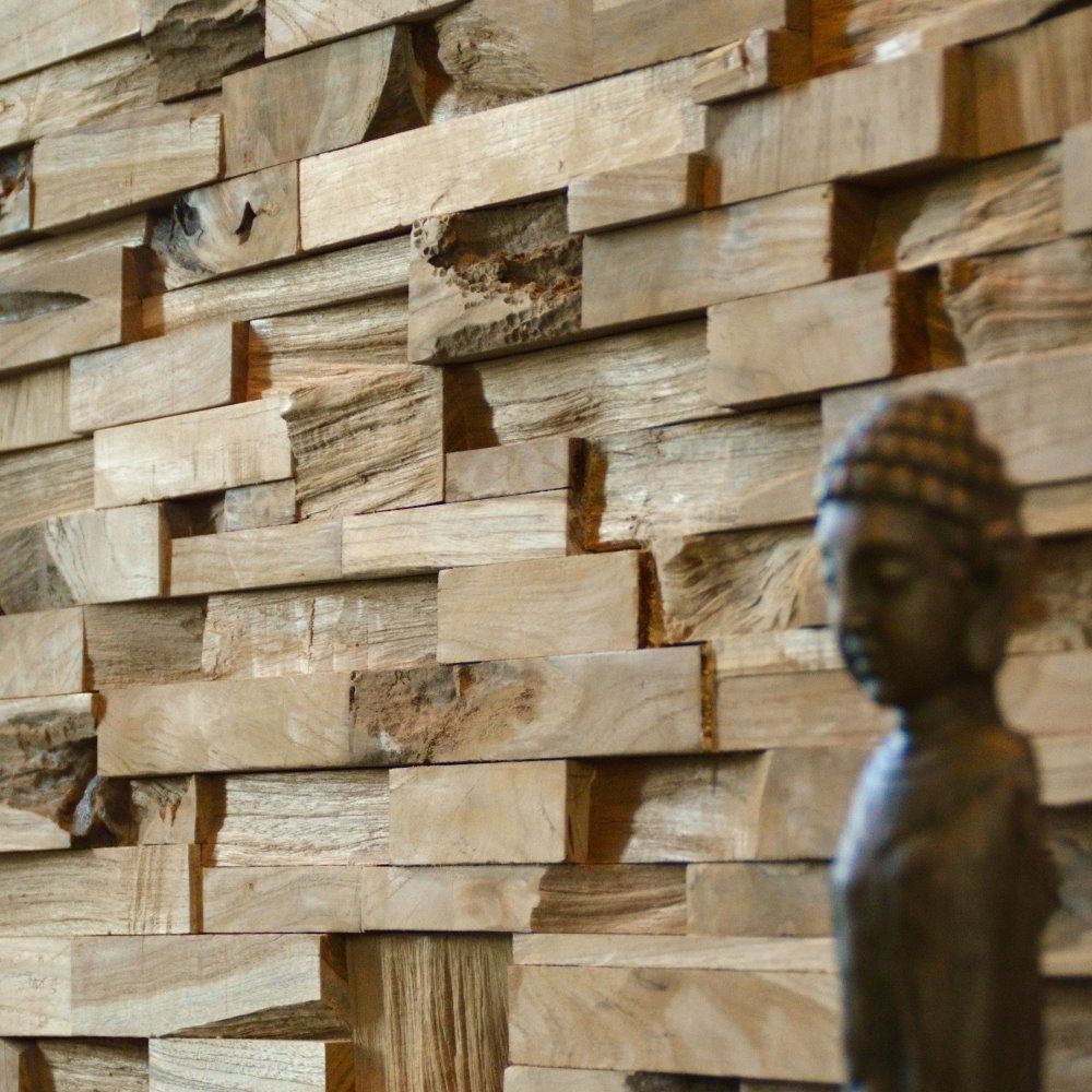 En anderledes og flot vægbeklædning i teaktræ. Bruges til dekoration eller beklædning af vægge. Teak vægbeklædningen er lavet ud af 100% genbrugstræ. Panelerne skal limes fast på væggen med f.eks. en Parketlim.