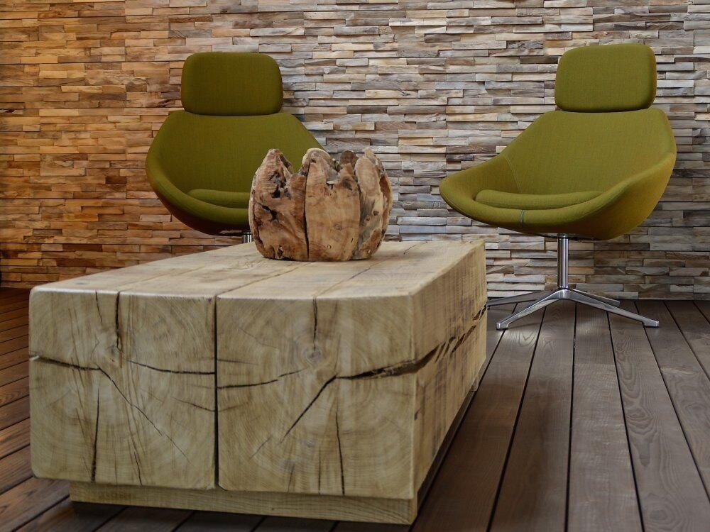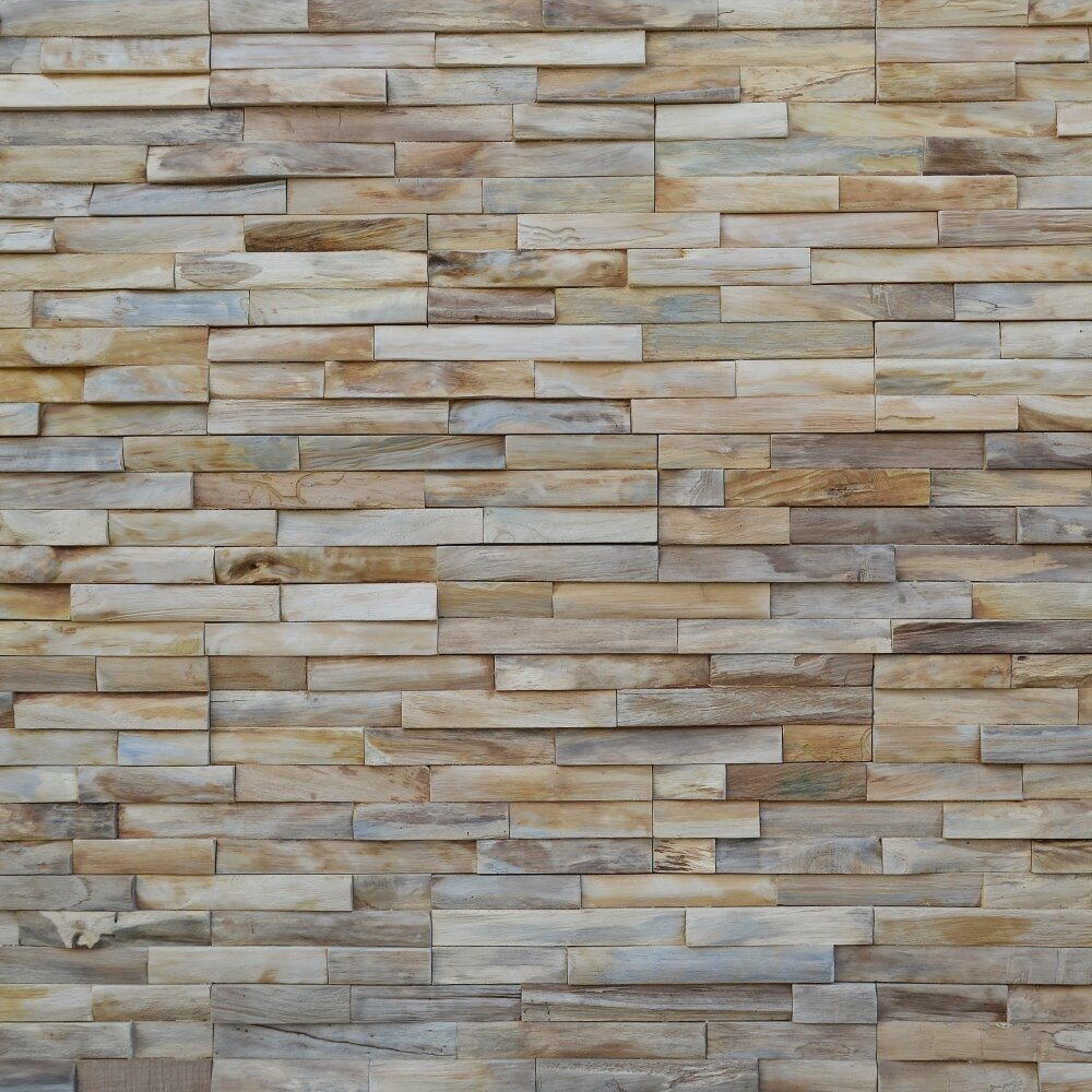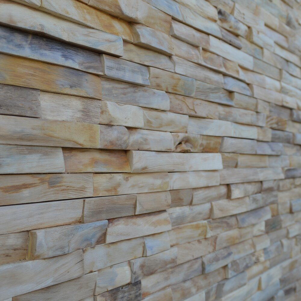 En anderledes og flot vægbeklædning i teaktræ. Bruges til dekoration eller beklædning af vægge. Teak vægbeklædningen er lavet ud af 100% genbrugstræ. Panelerne skal limes fast på væggen med f.eks. en Parketlim.