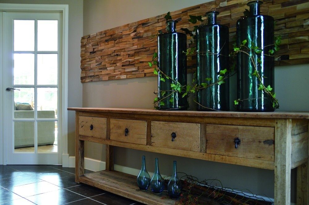 En anderledes og flot vægbeklædning i teaktræ. Bruges til dekoration eller beklædning af vægge. Teak vægbeklædningen er lavet ud af 100% genbrugstræ. Panelerne skal limes fast på væggen med f.eks. en Parketlim.