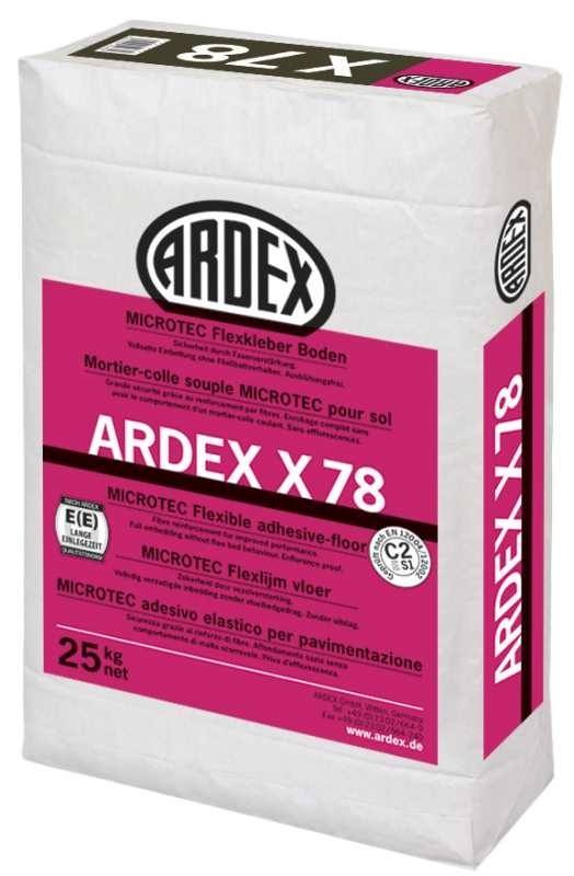 ARDEX X78 - Her får du et fleksibelt klæbelag med en blød, plastificeret mørtelkonsistens til udlægning af fliser og plader med 100% fuldklæbning og lang åbentid, som tillader montering helt op til 60 min.