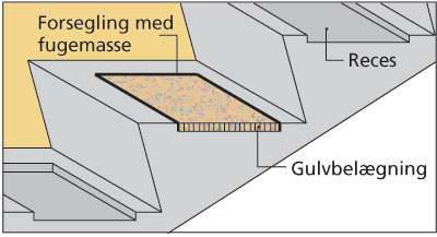 Figur 6. Forsegling med fugemasse. Betontrappetrin med reces Forsegling med fugemasse Reces