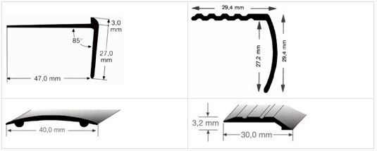 Metalprofiler leveres i mange typer og til flere belægningstykkelser. Profilerne leveres i længder op til ca. 5 m. Profilerne kan fastgøres ved limning eller skruning.