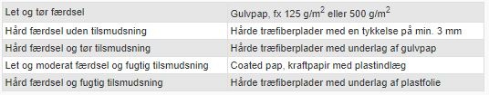 I ganglinier vil færdslen normalt være hård, og anden afdækning bør da suppleres med hårde træfiberplader.