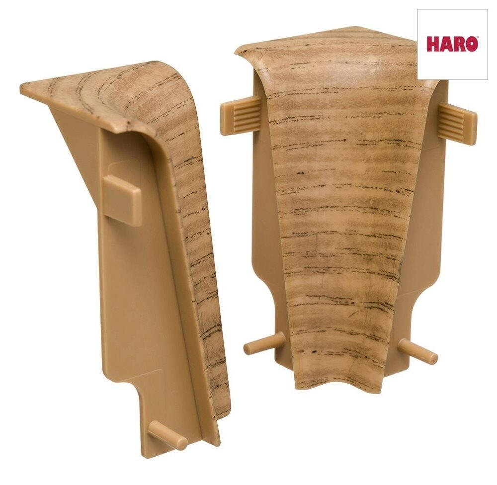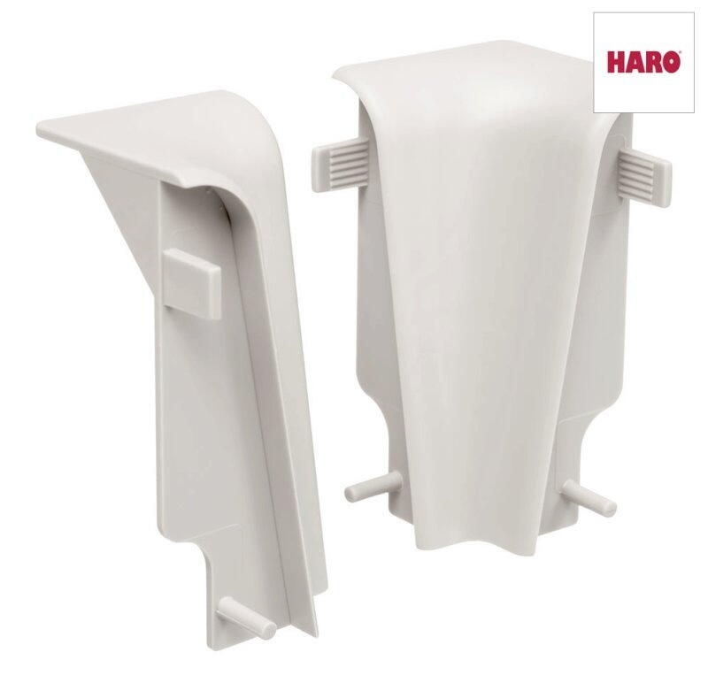 Plasthjørne med træmønster letter monteringen af Haro fodpaneler idet man kan undlade geringskæringer.