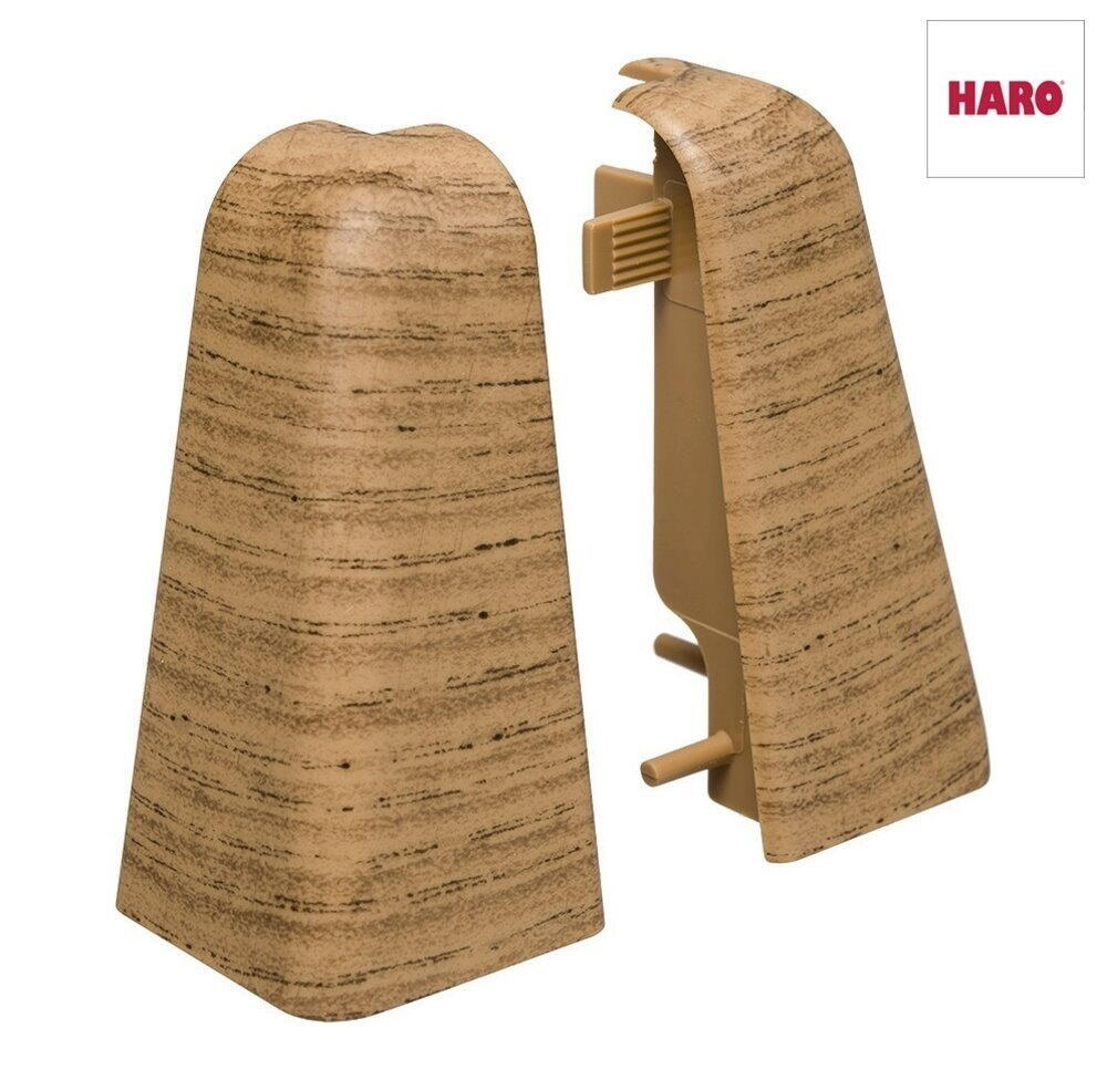 Plasthjørne med træmønster letter monteringen af Haro fodpaneler da kan undlade geringskæringer.