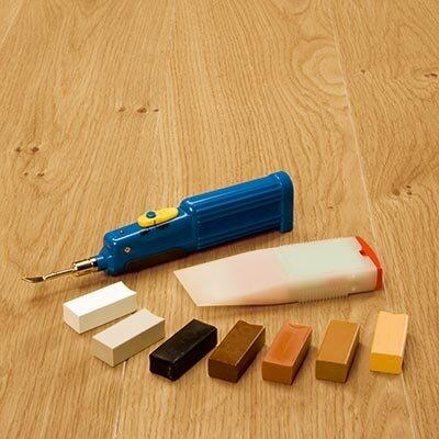 Kan reparere en skade på en planke hurtigt og nemt med voks, der omfatter hele Pergos træsortiment.