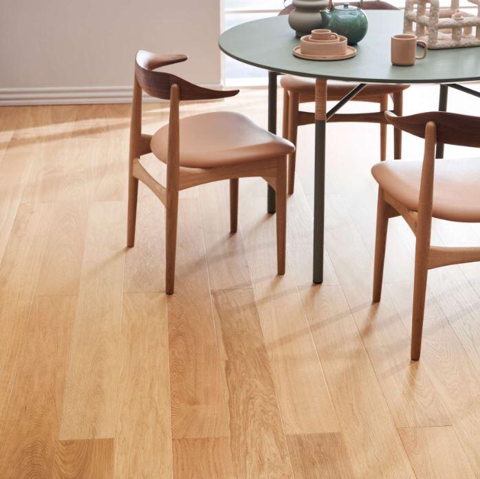Plank i Eg Prime er en harmonisk sortering i ensartede farvetoner med få og små knaster. Gulvet er overfladebehandlet med ultramat lak natur og efterbehandlet med Easy To Clean for nemmere rengøring. Plankerne er børstet for at fremhæve træets struktur. Faset langsider. MultiClic samling - lægges svømmende uden brug af lim. Afkortede planker kan forekomme.