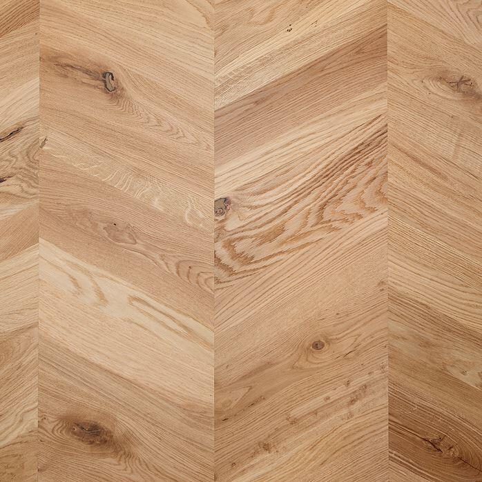 Eg Chevron i natur er et fransk sildebensmønster, som former et flot vingemønster. Gulvet er overfladebehandlet med ultramat lak natur og børstet for at fremhæve træets naturlige struktur. Stavene er påsat på plader, som sikrer en nem montering med Clic&Go. Pladerne leveres i størrelse 13x310x600 mm