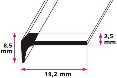 Trappeforkant til 2,5 mm. linoleum, lille - midthullet