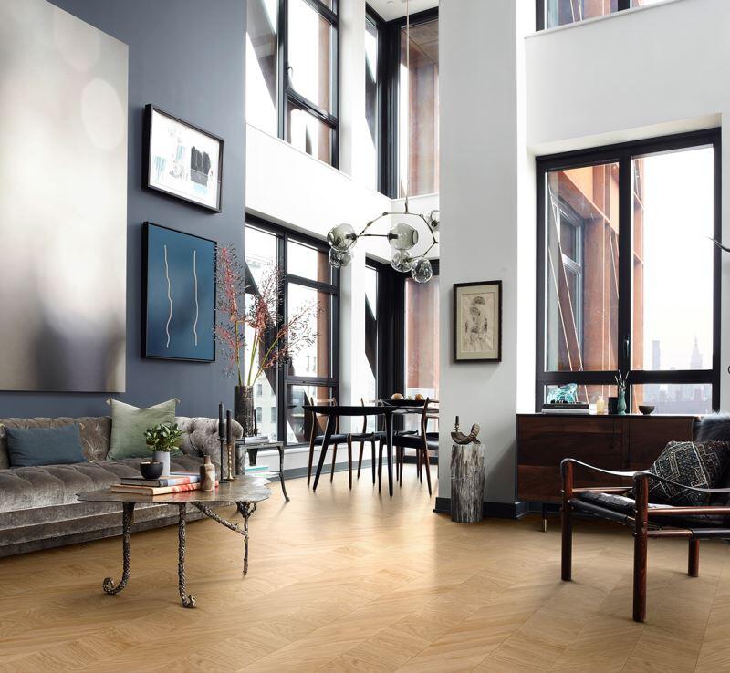 Parador lamelparket fra New Classics Design Edition i French Oak nature by Hadi Teherani sætter nye standarder. Dynamikken ved dette lamelparketgulv med overflade af massivt træ i naturolieret plus og dets virkning i rummet afhænger af den enkelte kombination af modulerne. Det klassiske sildebensmønster hører lige nu til blandt de absolutte trends, når det drejer sig om gulvdesign. Sorteringen Select imponerer takket være den harmoniske struktur, de fine farvenuancer og en usædvanlig elegant optik. En omgivende minifas afbryder udseendet af de lagte planker og sørger for en harmonisk plankeovergang. Til Parador lamelparket fra New Classics Design Edition by Hadi Teherani i French Oak bruges det patenterede Automatic-Click-system, så gulvet kan lægges let og altid give en optimal oplevelse.