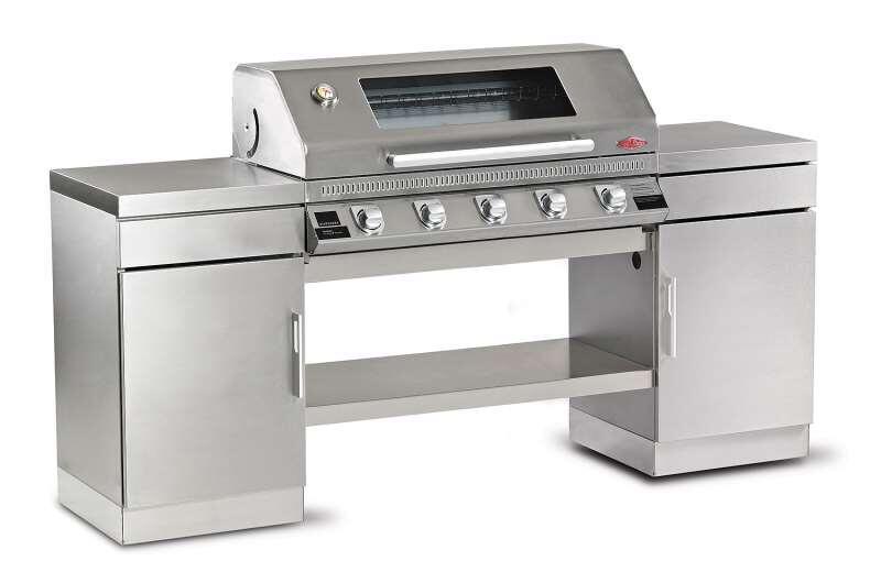 Grill med 4 brændere, 2 skabsmoduler samt bundhylde.