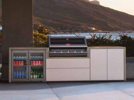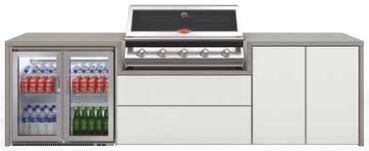 Grill Signature 2000S med 5 brændere, dobbeltdør køleskabsmodul og standard moduler samt top.