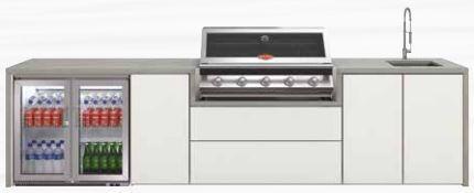 Grill Signature 2000S med 5 brændere, dobbeltdør køleskabsmodul, vask og standard moduler samt top.