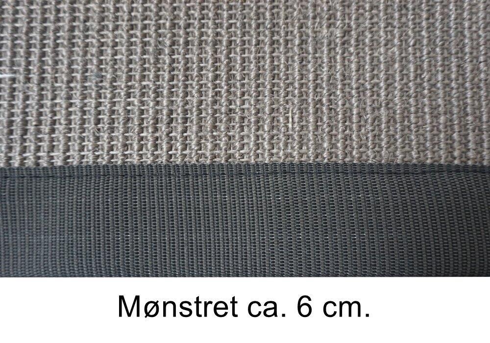 Dette tæppe laves på mål efter dit ønske. Du er velkommen i et af vores showrooms, hvor du kan se farveprøver på tæppet og kantbånd.