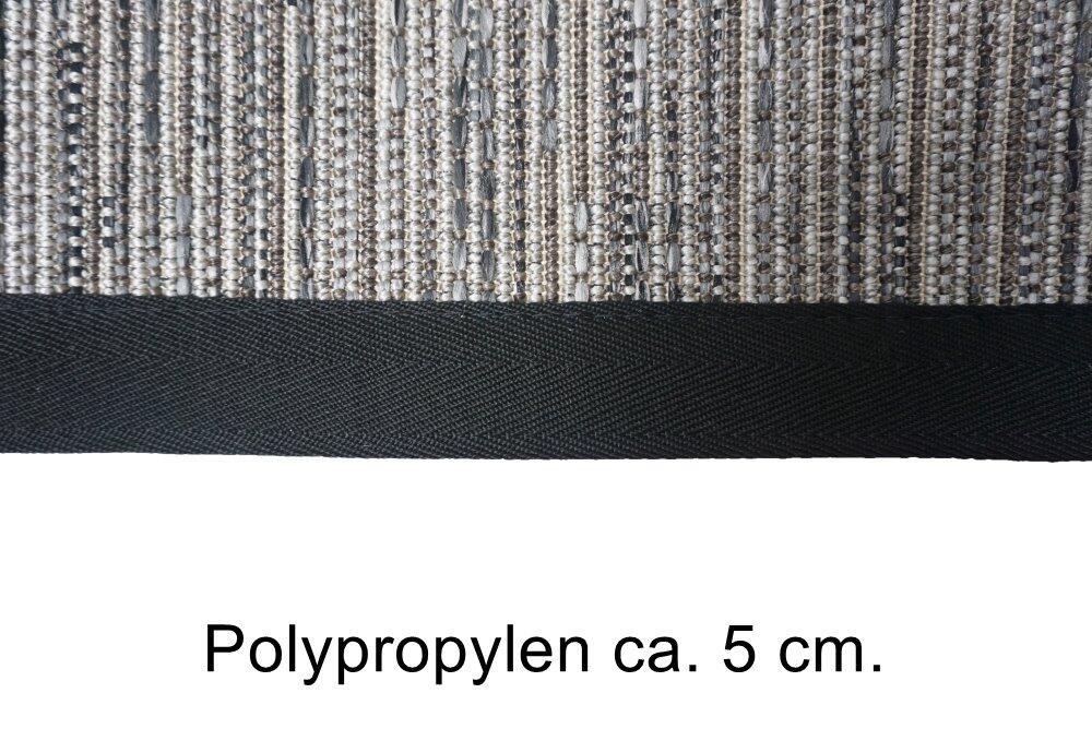 Herunder farverne på kantbånd i polypropylen. Den synlige kant er ca. 5 cm. bred.
