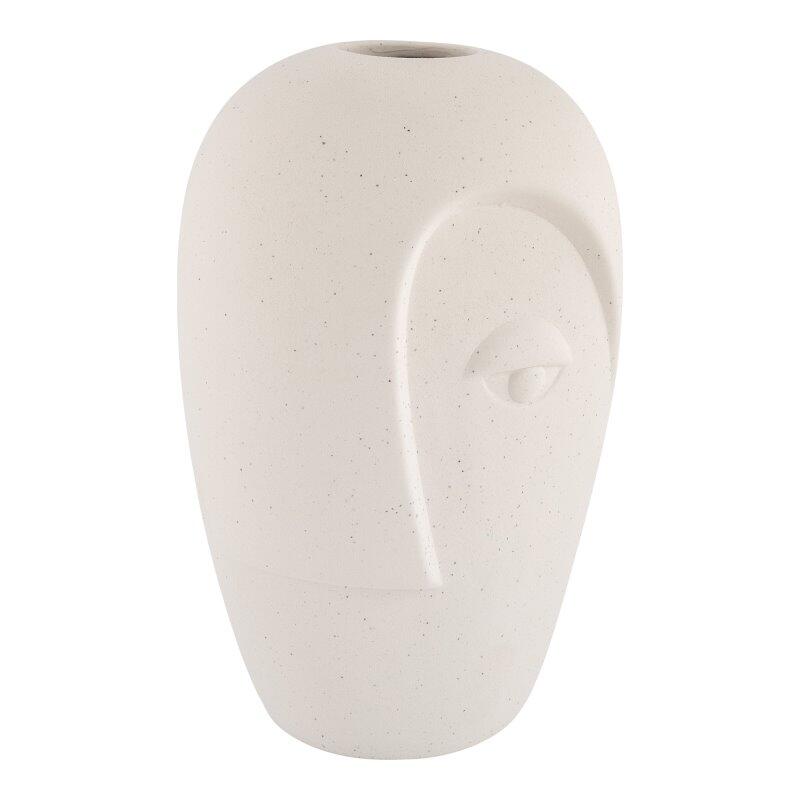 Vase i sand keramik med ansigt.