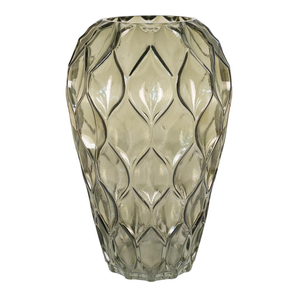 Vase i grøn mundblæst glas.