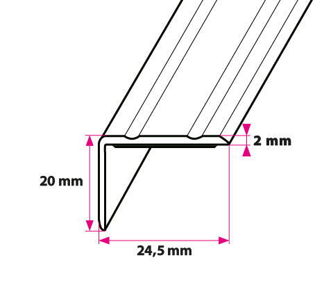 Montering: Skinnen limes fast til underlaget med monteringslim.