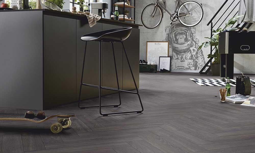 Elegant og smukt laminatgulv, som med det klassiske sildebensmønster giver et utrolig tidsløst og stilrent design. Slidstyrken passer til privat bolig, f.eks. soveværelse, køkken, stue og værelser. Til korrekt montering bruges lige dele højre og venstre stave, som klikkes sammen.