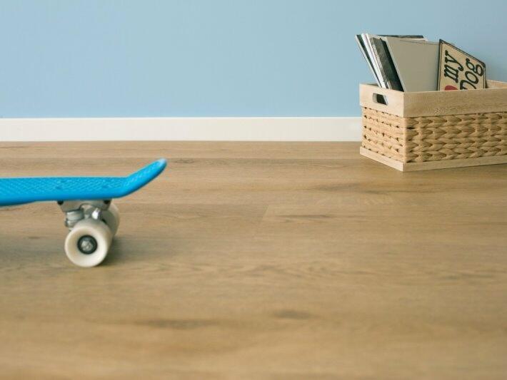 Med kork bagside, som giver øget gang komfort. De lange planker giver et flot udseende i boligen. Med kliksystem for nem montering.