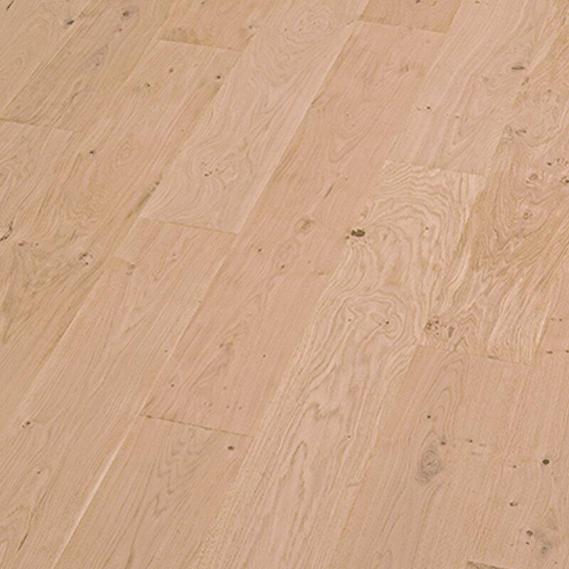 Prestige Atlantic er et lyst, struktureret egetræsgulv med markant knastspil og større fyldninger.